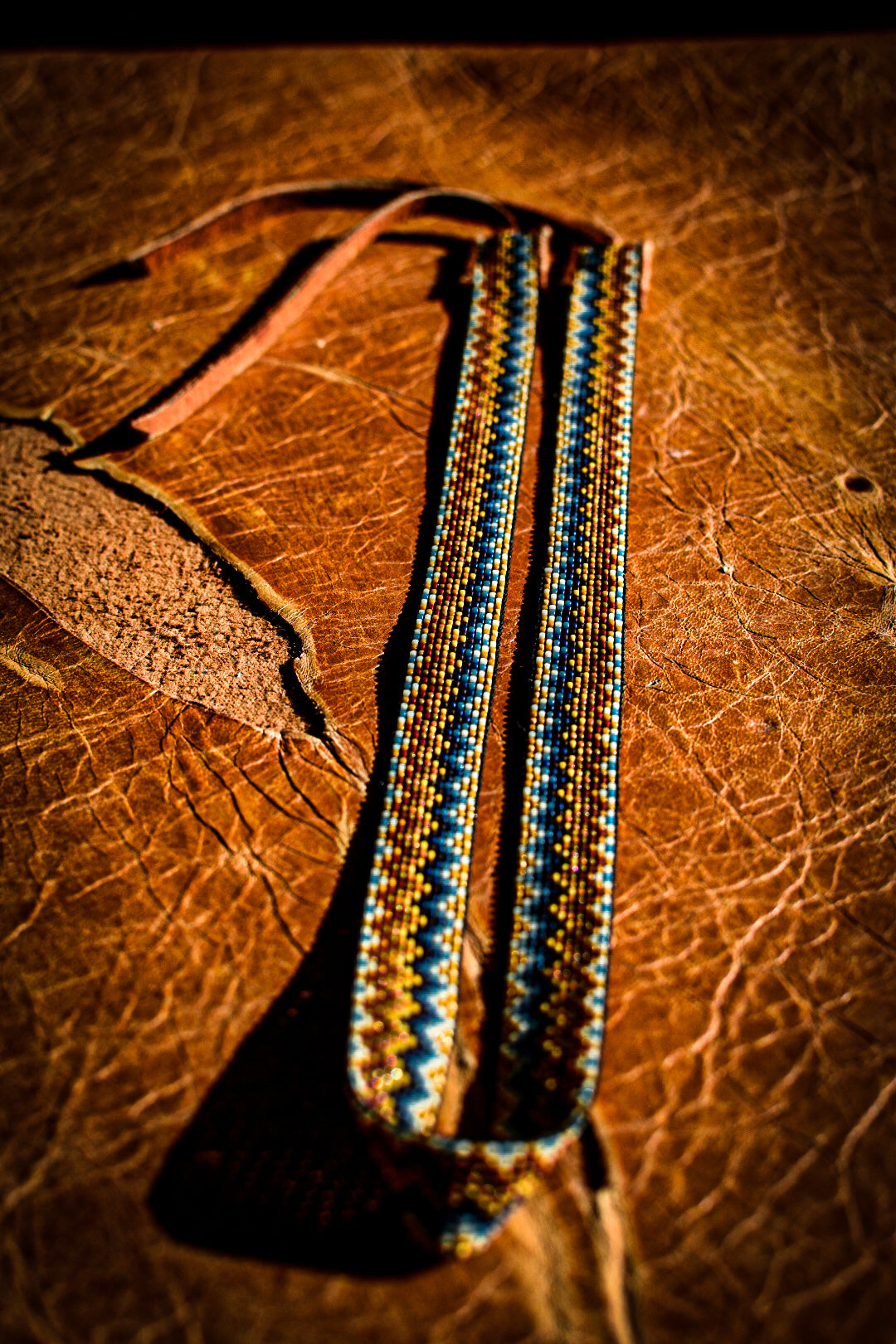 All the colors that paint the morning sky. Earthy toned glass beads with tobacco colored American elk hide leather ties.