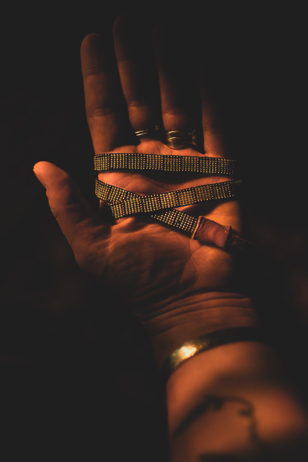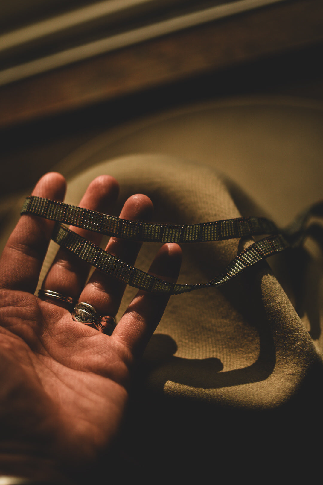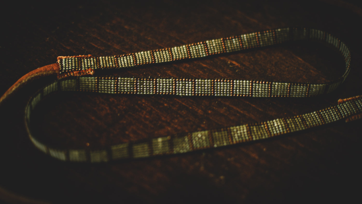 Translucent blue-green and bronze beads with tobacco colored American Elk hide leather ties. Made by hand with the intention of being heirloom quality in Montana, USA.